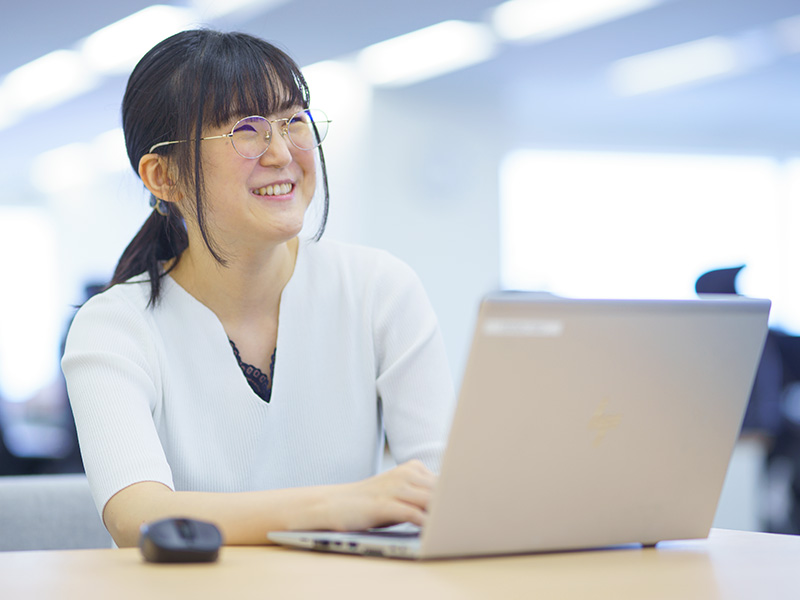 大学で応用化学を専攻していたのは、化粧品の開発研究者になりたかったからなんです。モノを作り出す仕事に興味があったので、就職活動中にエージェントからIT分野もモノづくりとして考えられるのではないか? と提案があって、興味を持ちました。システム構築がどういうものかも知らないところからスタートして、入社後の研修と配属先で猛勉強しました。 入社当時は、プログラミングは一人でコツコツやる仕事というイメージを持っていたのですが、お客さまであったりチームのメンバーであったり、誰かとやりとりをしながらでないと進めることのできない仕事であるということを知りました。要件定義の仕事をするようになって、さらに人との関わりの重要性はもちろん、その楽しさも感じています。今は上司が主にお客さまとやりとりをすることが多いですが、今後は自分でできるようになっていきたいですね。